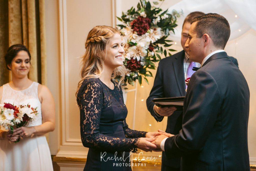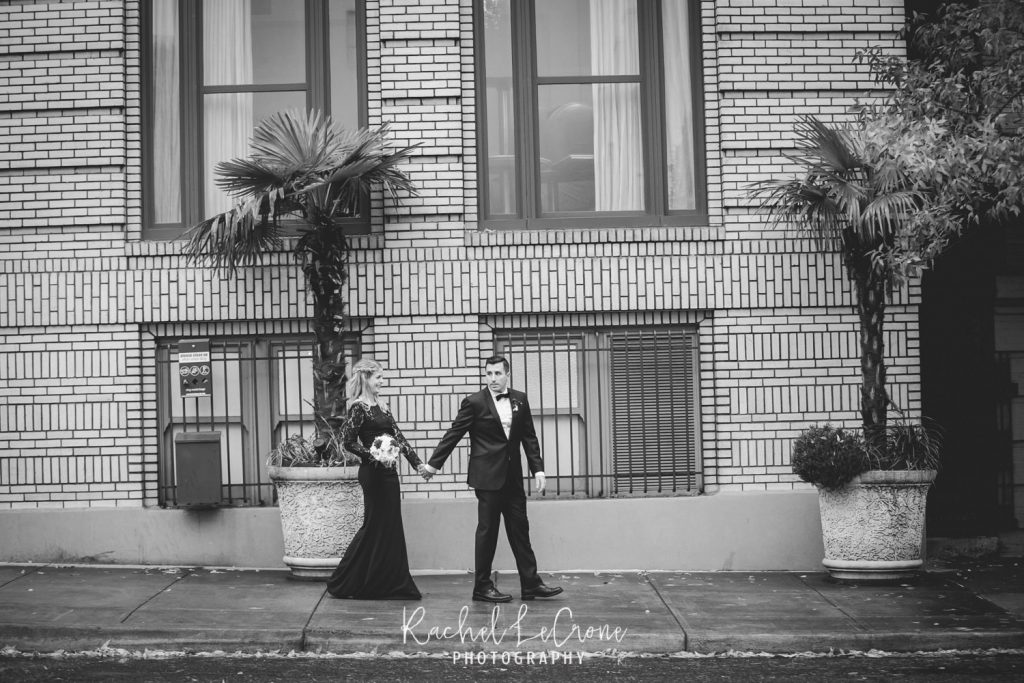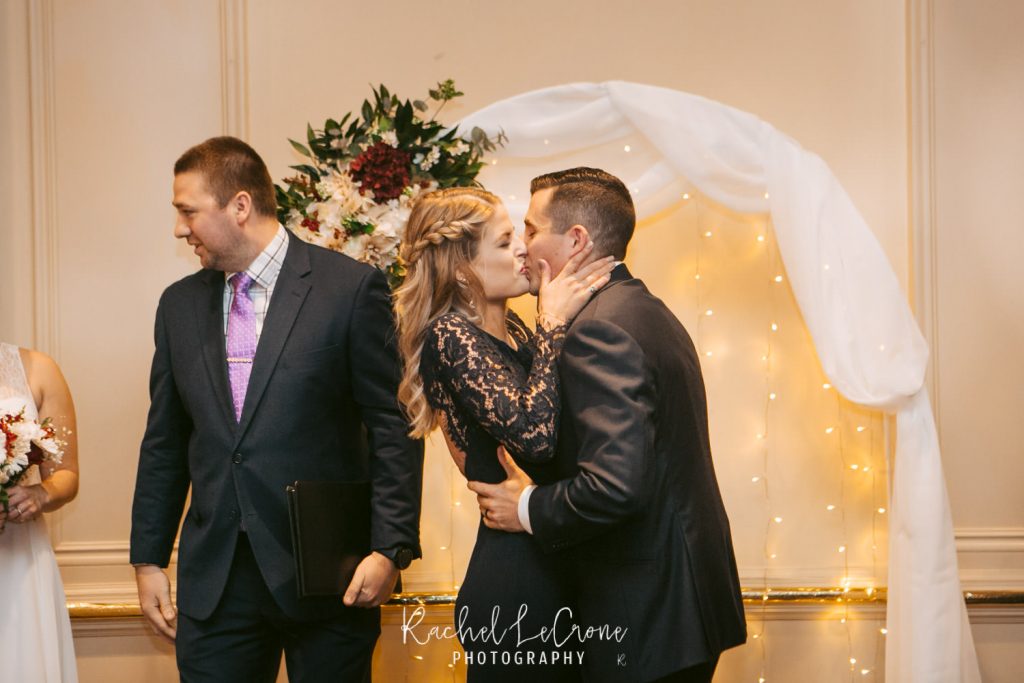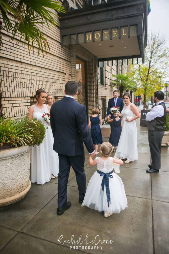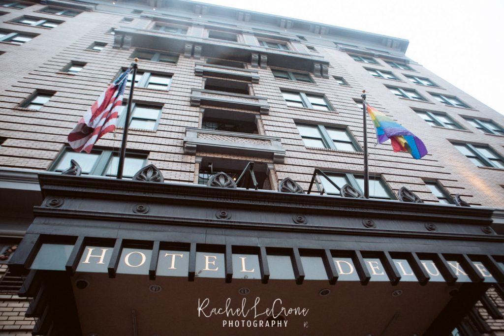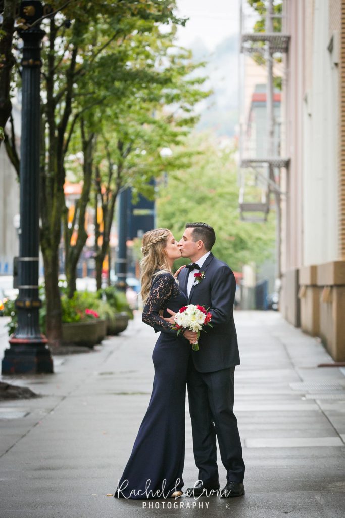 Morgan and Scott’s vintage wedding last Friday was one I have been looking forward to all year. I had so much fun with this couple on their engagement session and I knew the wedding would be the same. They had a very sweet and short ceremony among all their closest family and friends, at the Portland Hotel DeLuxe. Everything was perfect especially Morgan’s unique navy wedding gown. The couple shared their first look moments before walking down the aisle together. It was so sweet to capture this! It was also also a treat to be apart of an all vegan reception. The meal was so delicious and the cupcakes were gone pretty quick. Congratulations Morgan and Scott, thanks for letting me be apart of your wedding day! I know you will have a wonderful and full life together.
