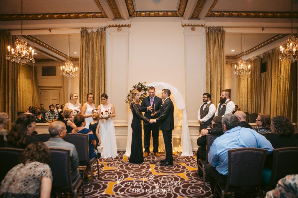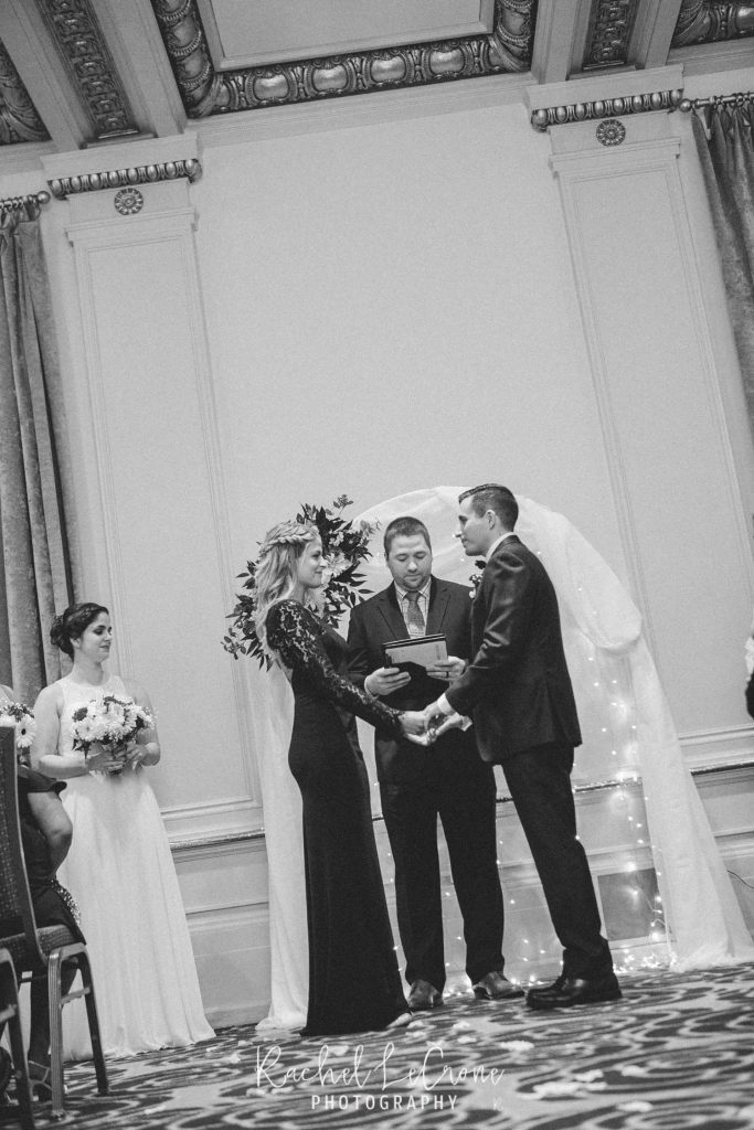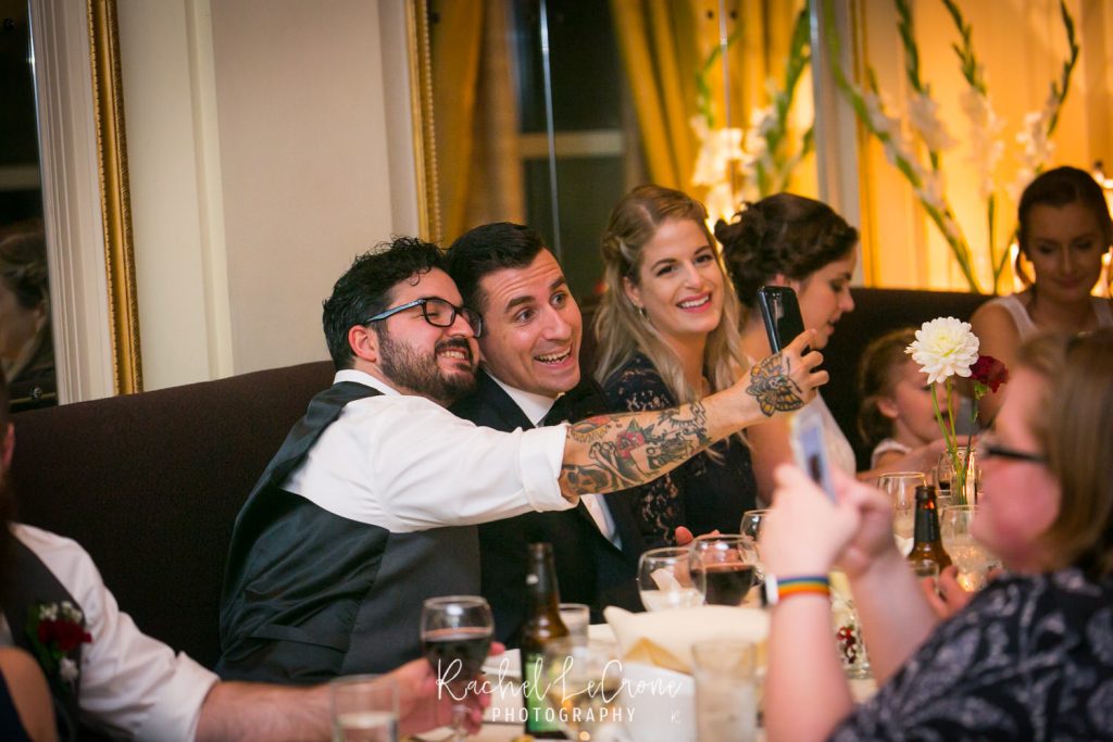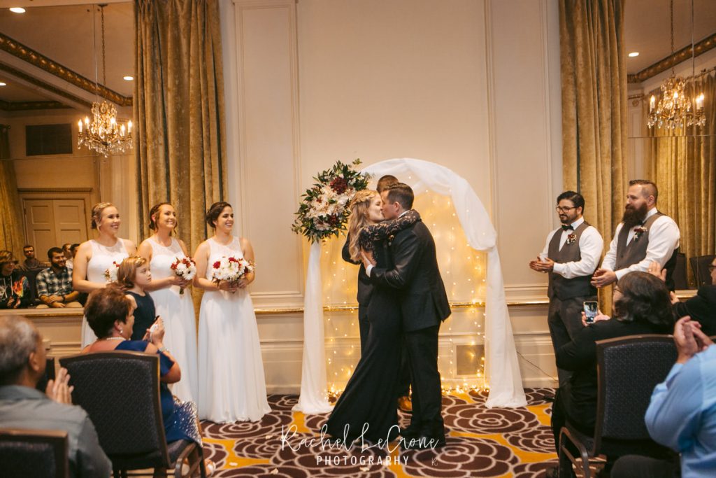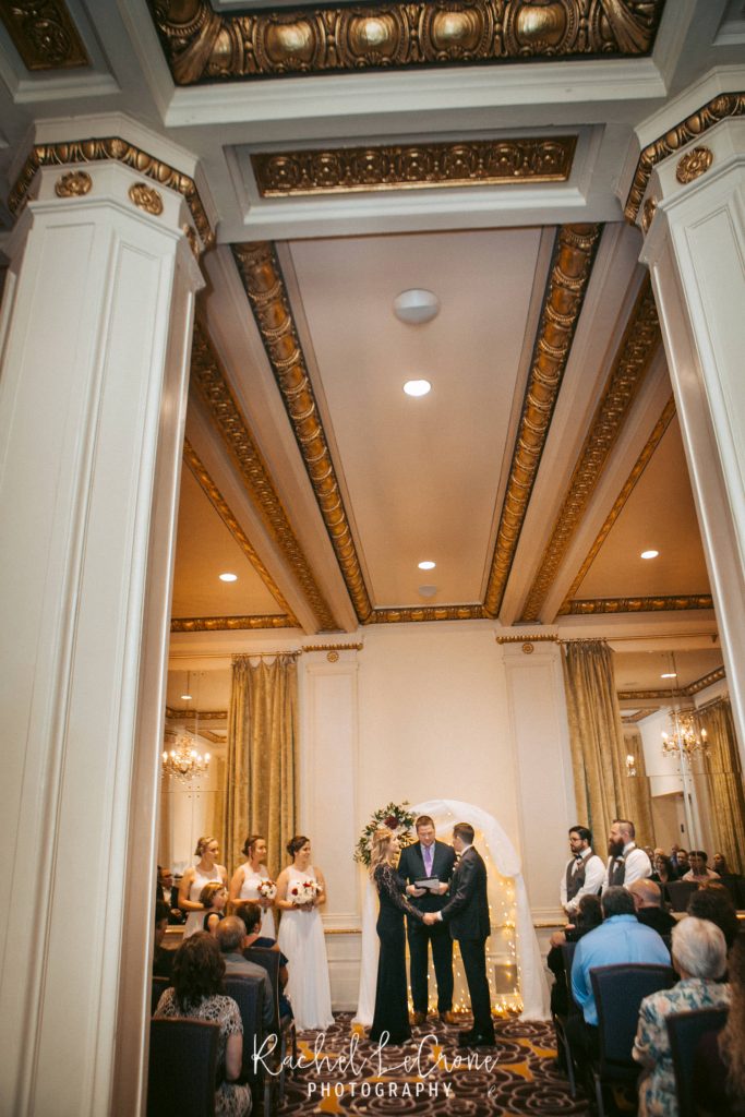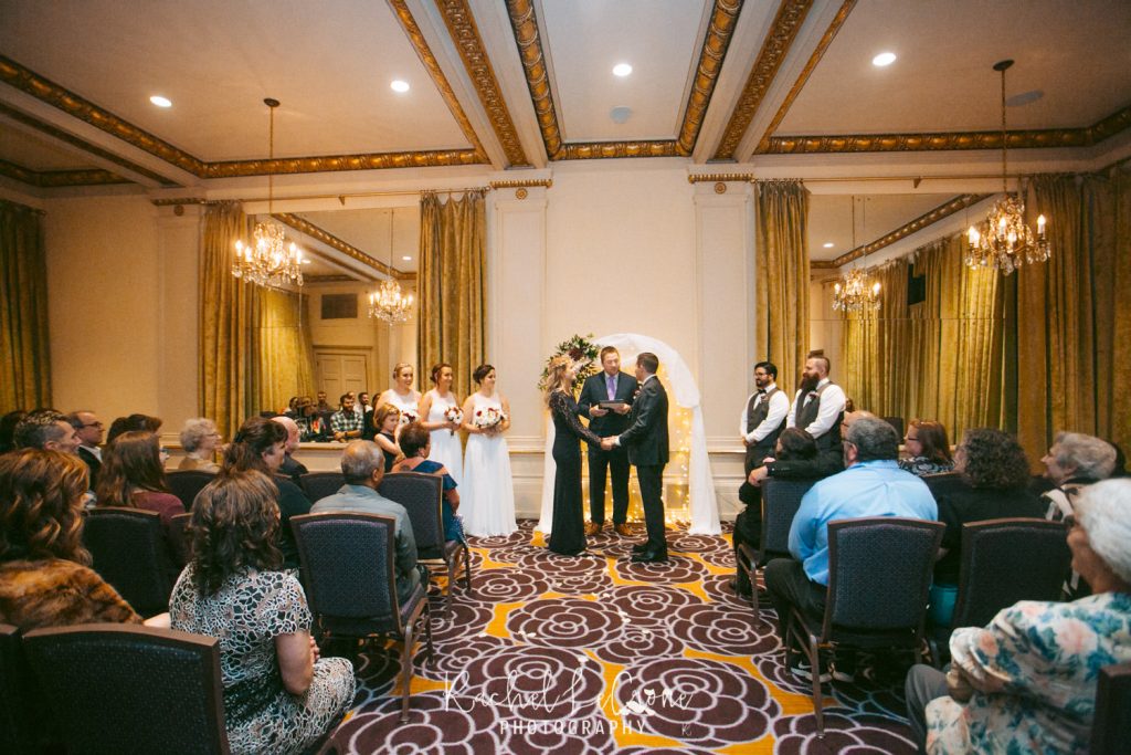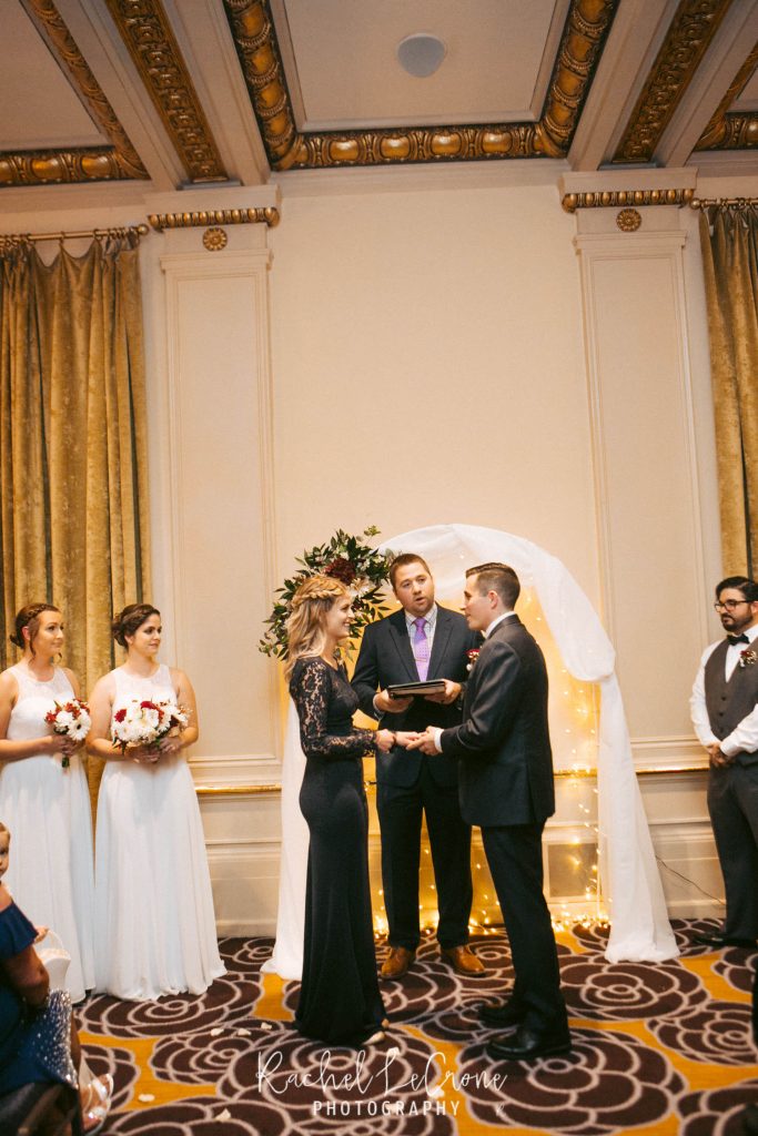Morgan and Scott’s vintage wedding last Friday was one I have been looking forward to all year. I had so much fun with this couple on their engagement session and I knew the wedding would be the same. They had a very sweet and short ceremony among all their closest family and friends, at the Portland Hotel DeLuxe. Everything was perfect especially Morgan’s unique navy wedding gown. The couple shared their first look moments before walking down the aisle together. It was so sweet to capture this! It was also also a treat to be apart of an all vegan reception. The meal was so delicious and the cupcakes were gone pretty quick. Congratulations Morgan and Scott, thanks for letting me be apart of your wedding day! I know you will have a wonderful and full life together.