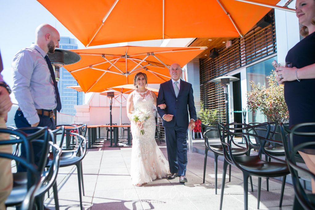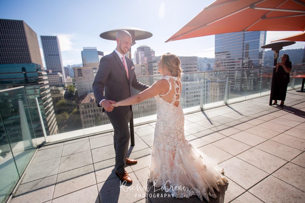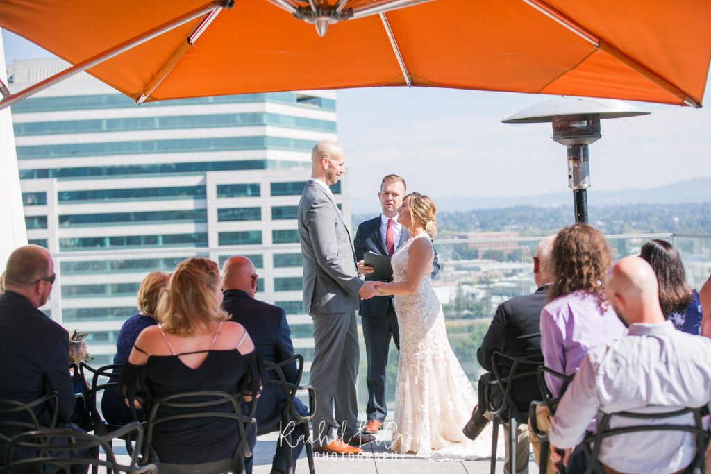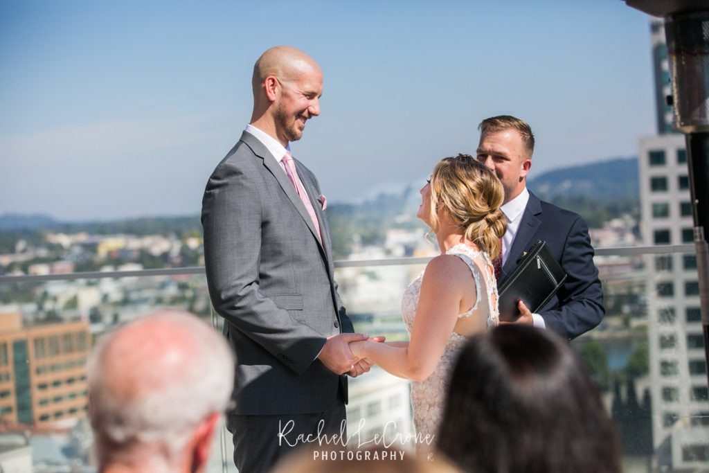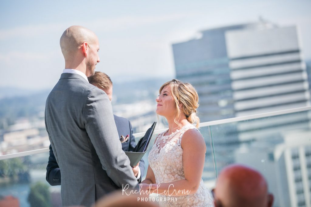 It was the perfect couple and the perfect city day last Friday at the Departure in the Nines Hotel in Portland, Oregon. We had blue skies, white clouds, the perfect city background, and all the mountains were visible. Abby and Geoff, who only moved to Portland a few months ago brought their closest family and friends across the country to this intimate ceremony and dinner on the rooftop of the Nines Hotel. These two had so much love and joy around them, i couldn’t help but tear up myself. Congrats to you both and thank you for letting me share in you joy.