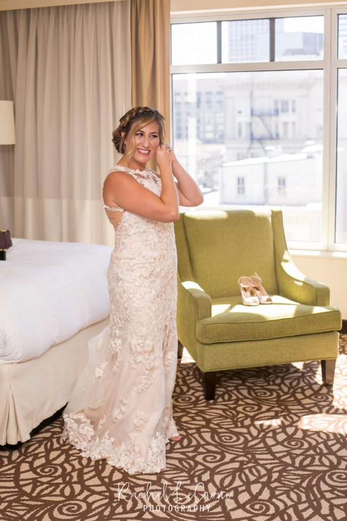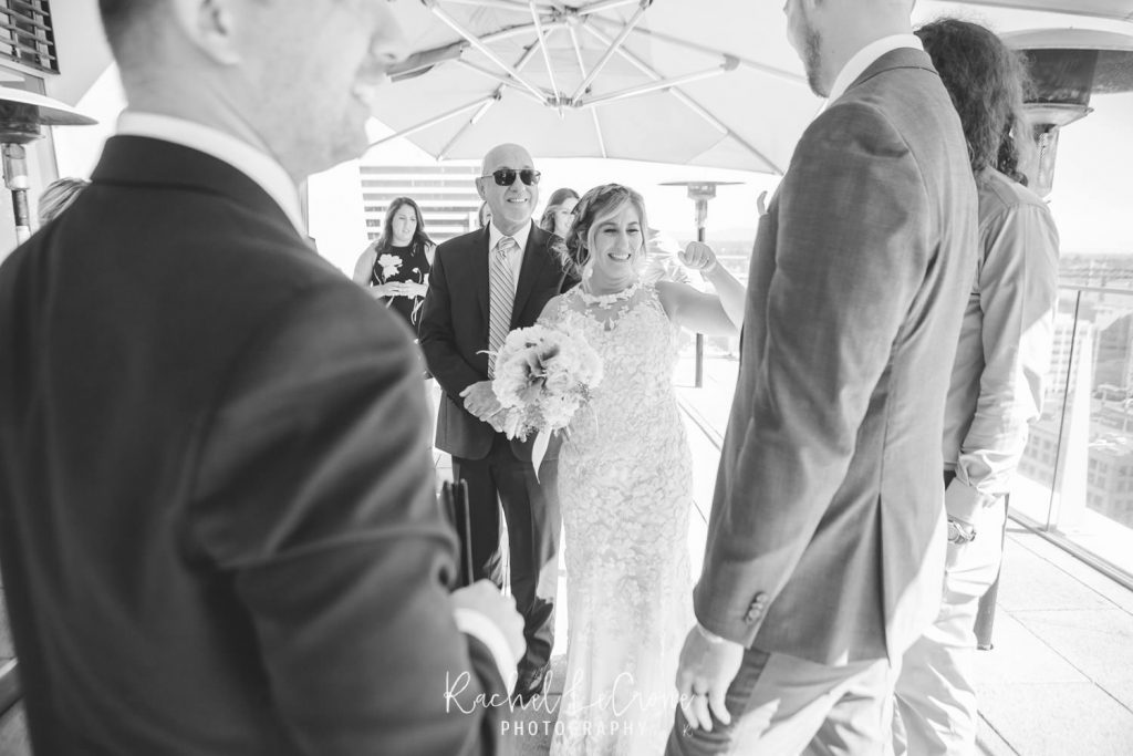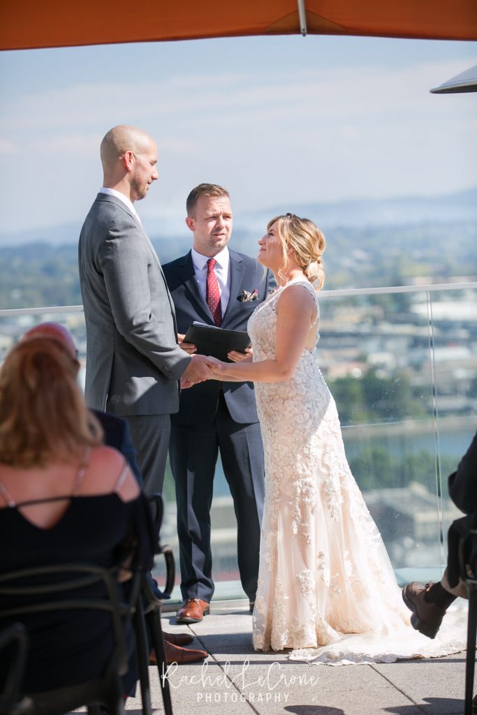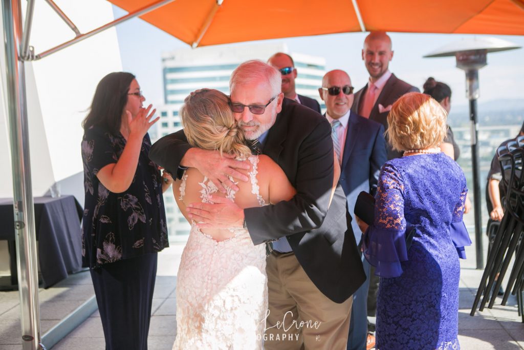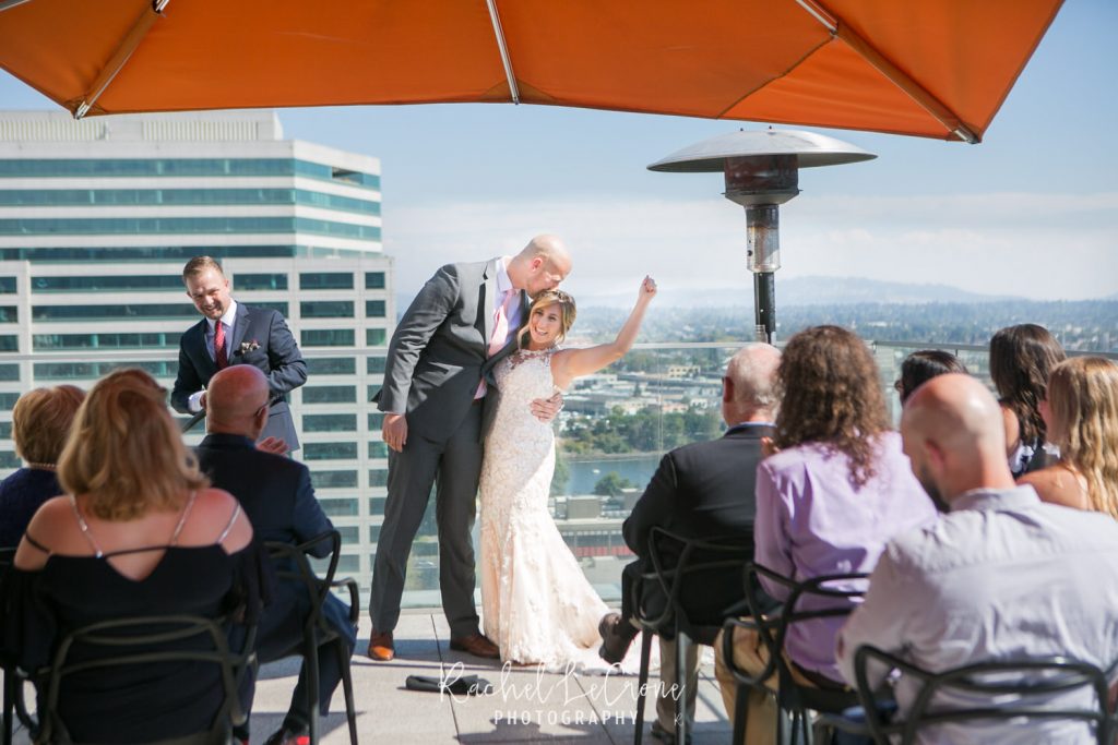It was the perfect couple and the perfect city day last Friday at the Departure in the Nines Hotel in Portland, Oregon. We had blue skies, white clouds, the perfect city background, and all the mountains were visible. Abby and Geoff, who only moved to Portland a few months ago brought their closest family and friends across the country to this intimate ceremony and dinner on the rooftop of the Nines Hotel. These two had so much love and joy around them, i couldn’t help but tear up myself. Congrats to you both and thank you for letting me share in you joy.